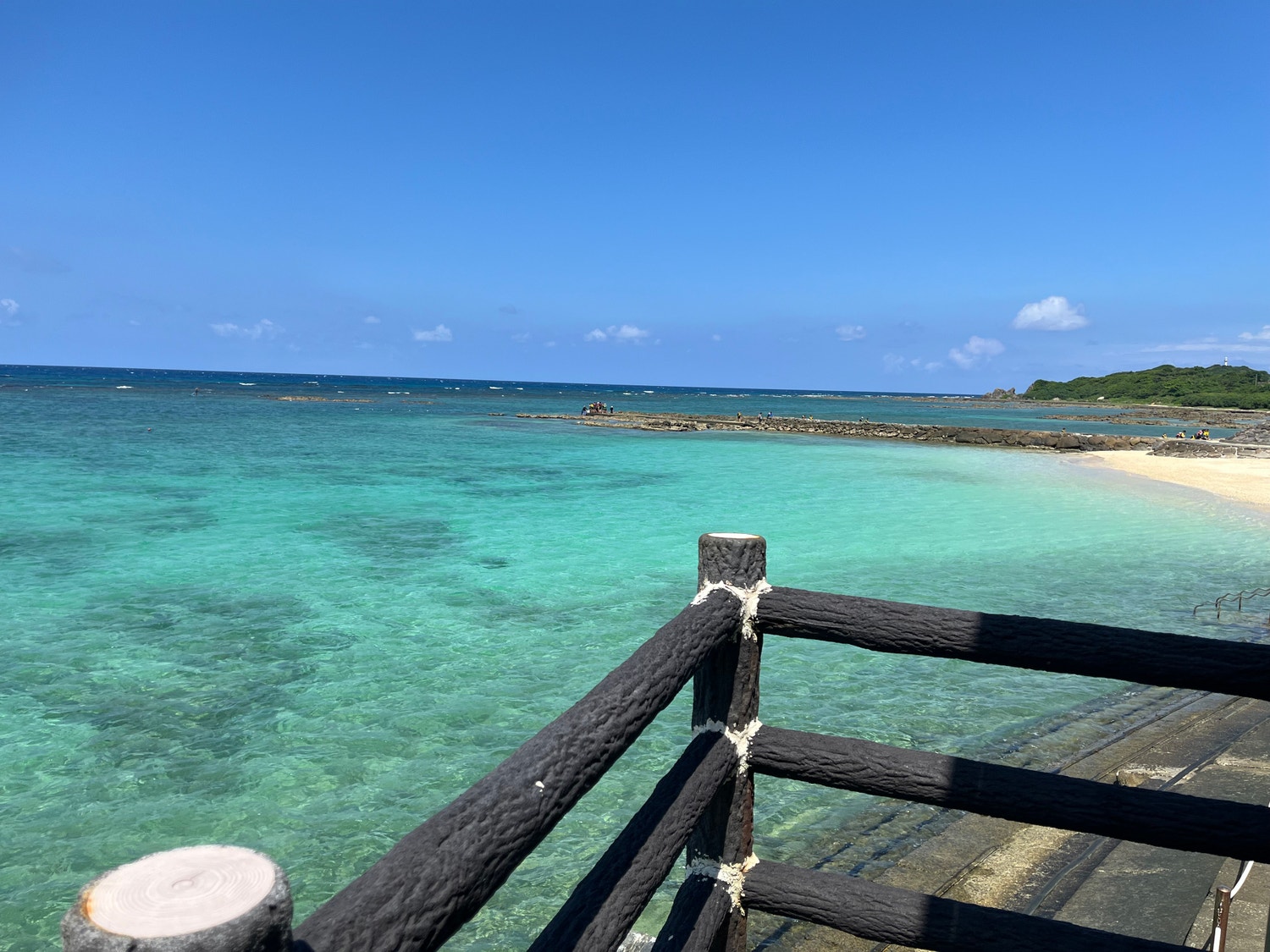 登山の帰りにはヨナマビーチに寄りました。驚くほどの透明感とエメラルドグリーンの海に心が躍りました!