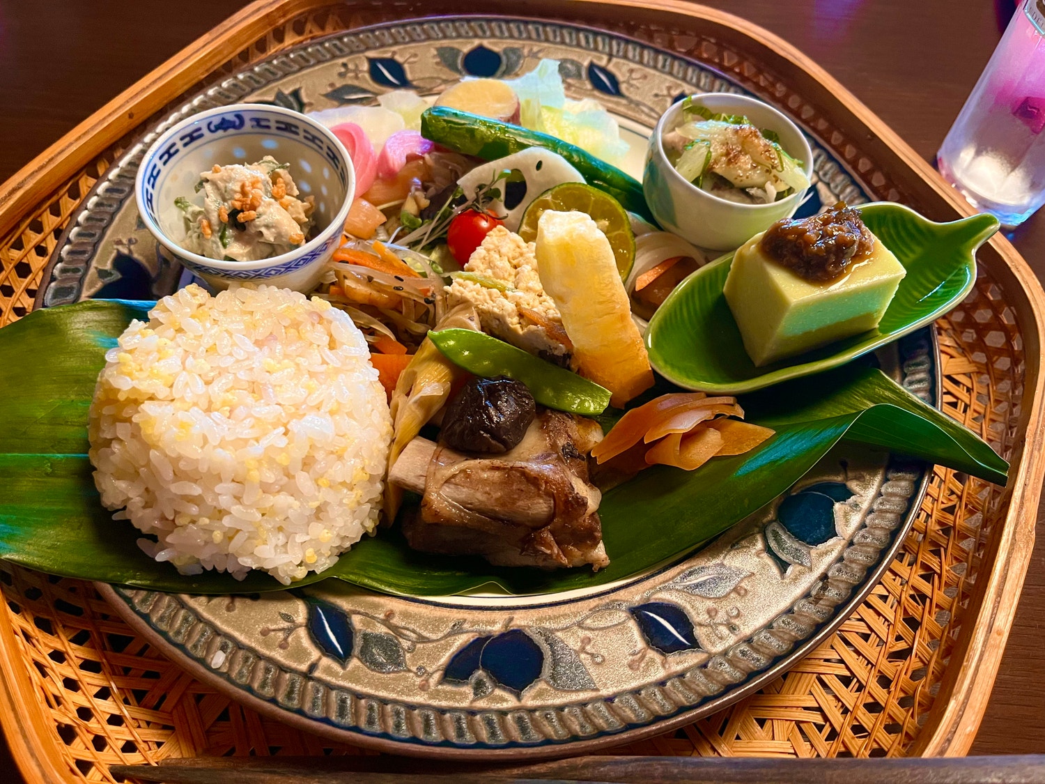 ちょっと遅めのランチには『カフェまえざと』で徳之島で採れた食材を使った食事をいただきました。食後には親睦のお茶として徳之島で受け継がれてきた「ふり茶」を振る舞ってくださいました。