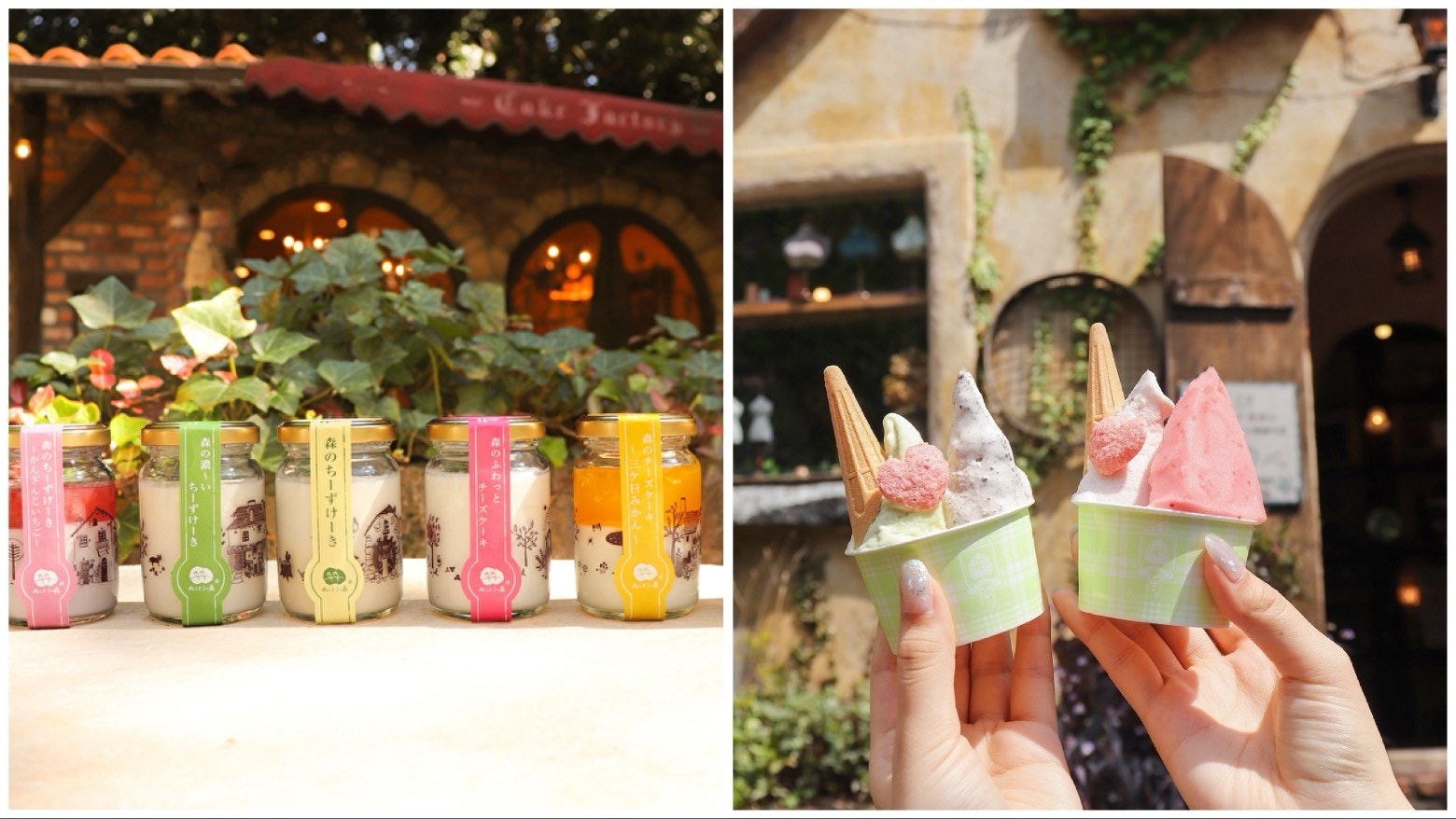 特におすすめしたいのが、森のチーズケーキやさん。ボトル入りチーズケーキが6種そろう、人気ショップです。濃厚でしっとりとしたチーズケーキは、一口食べれば幸せが広がります。また、ジェラート屋さんでは静岡県のフルーツを使ったフレーバーも楽しめますよ。散策のお供にぜひ味わってみてください。
