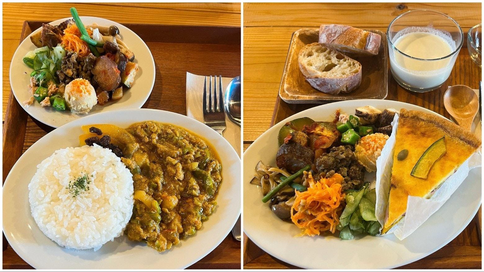 ランチメニュー「季節野菜のドライカレー」と「平飼い卵のキッシュ」