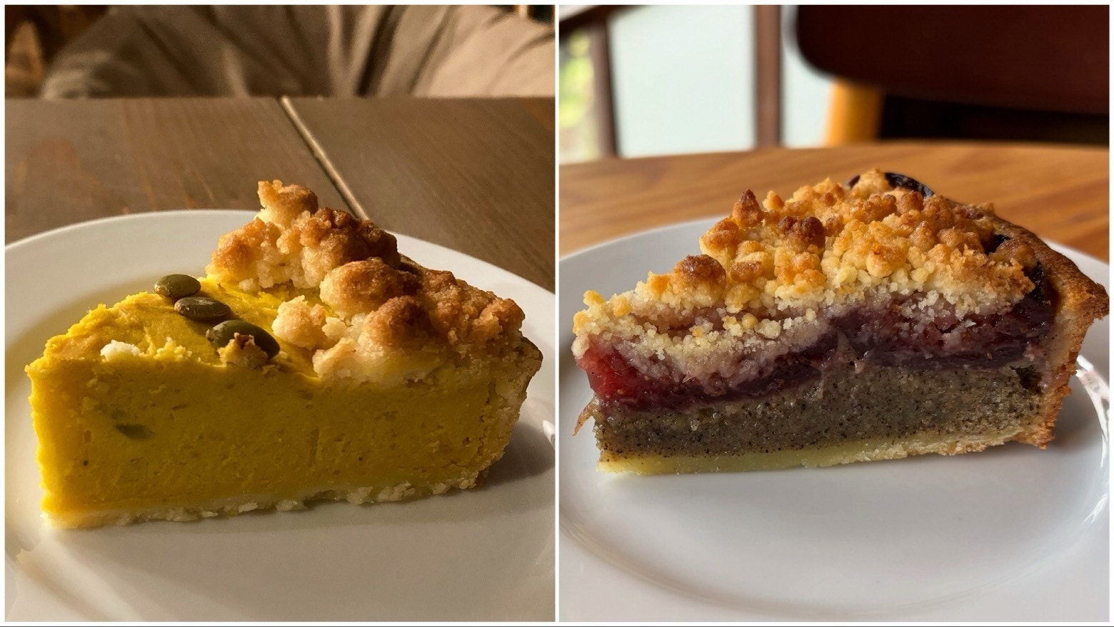 かぼちゃのタルト(写真左)とイチジクと紅茶のタルト(写真右)