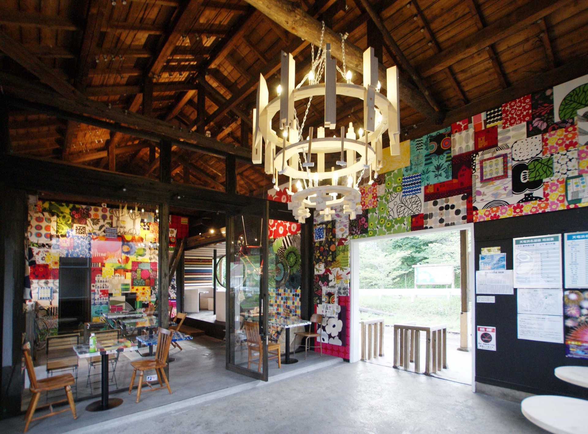 カフェの内装は、マリメッコをはじめとする北欧風インテリアで統一されており、洗練された雰囲気を醸し出しています。自然光が差し込む明るい店内は、ゆったりとくつろげる空間です。また、窓からは、天竜浜名湖鉄道の線路が見え、のどかな風景が広がります。