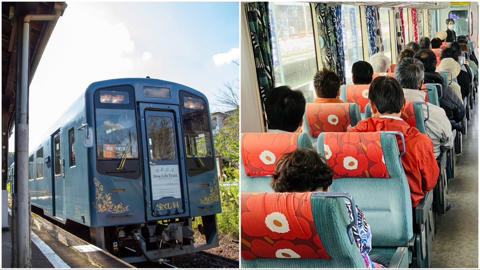 ちなみに、天竜浜名湖鉄道では、車内を北欧インテリア「マリメッコ」で飾られた列車が運行しています。私は2025年3月と7月に「JAL客室乗務員と巡る天浜線ゆったりのんびり旅」にて、この車両に乗務しました。天浜線沿線のおすすめスポットに立ち寄り、参加者のみなさまと浜名湖周辺の風景を楽しみました。今後もツアーを予定していますので、ぜひご参加をお待ちしています。