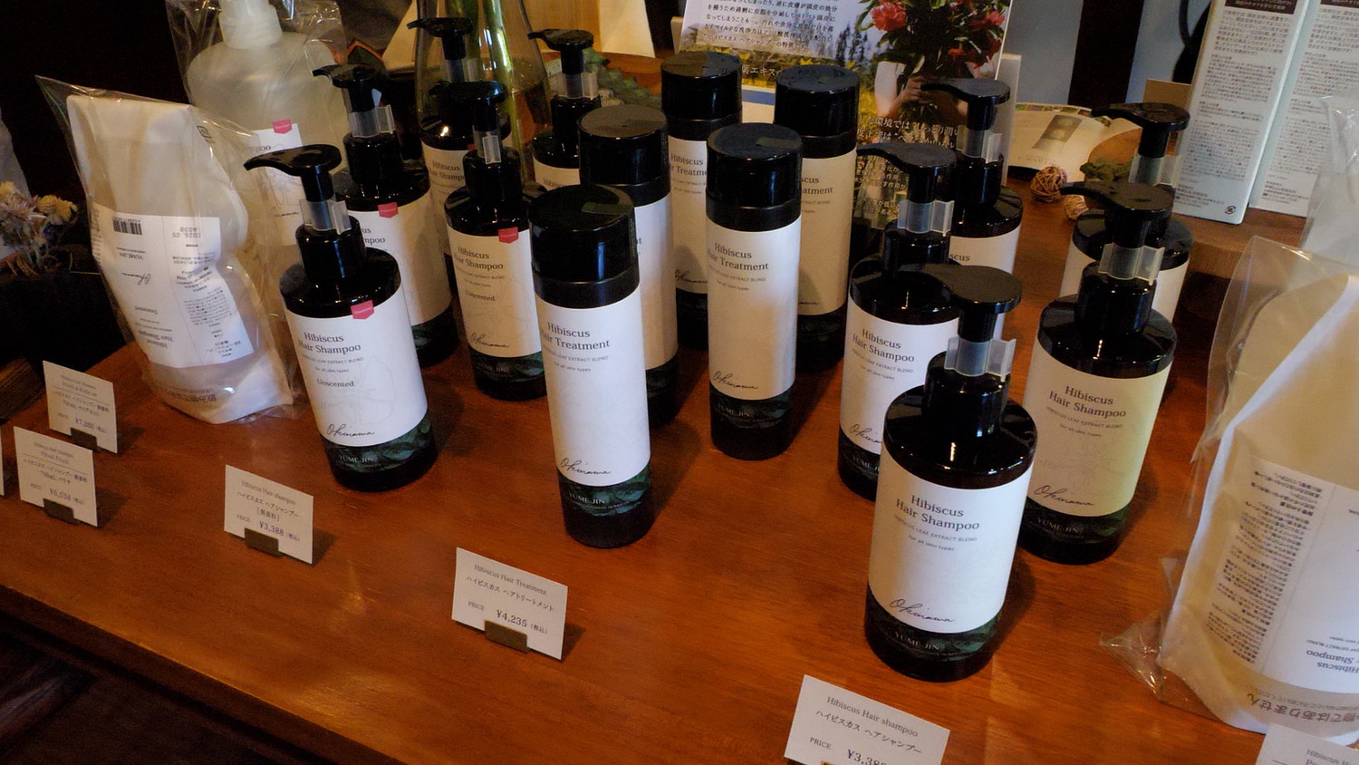 「愛する家族が安心して使える製品づくり」をモットーにされていることもあり、お店に並ぶヘアケア&ボディケア製品は全てお肌にやさしいものばかり。