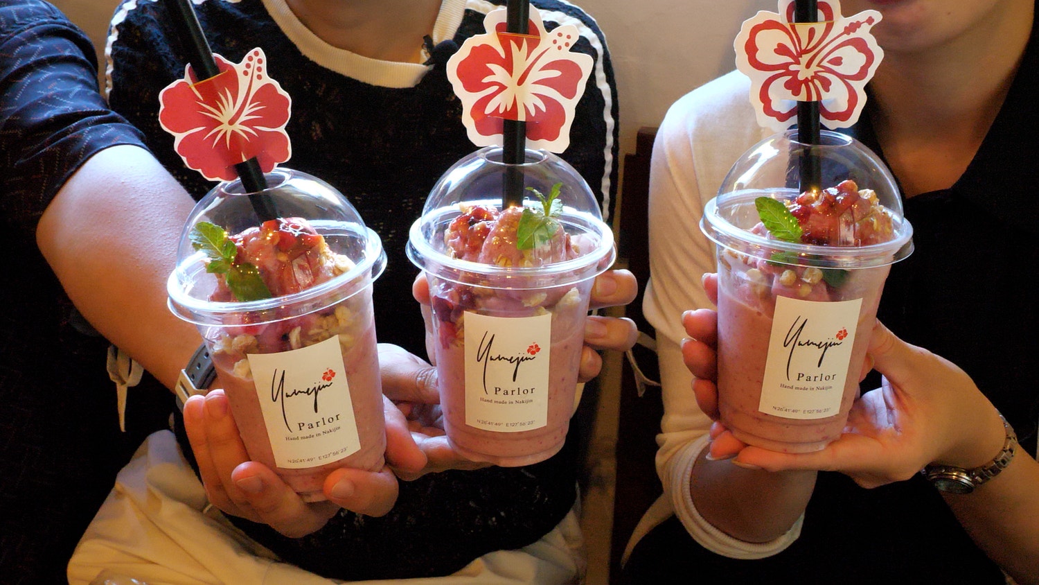 ショップ内では、オーガニックハイビスカスの花びらをたっぷり使った手作りのフラワースムージーも楽しむことができました。