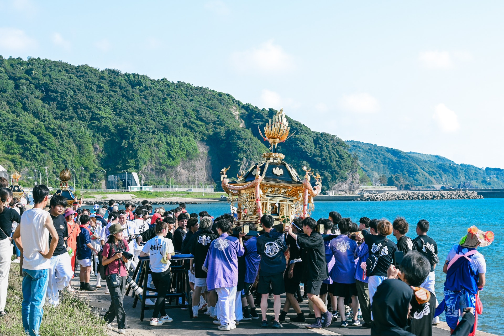 男神を乗せた神輿と地区の神輿が増穂浦へ集まる「本祭り」。