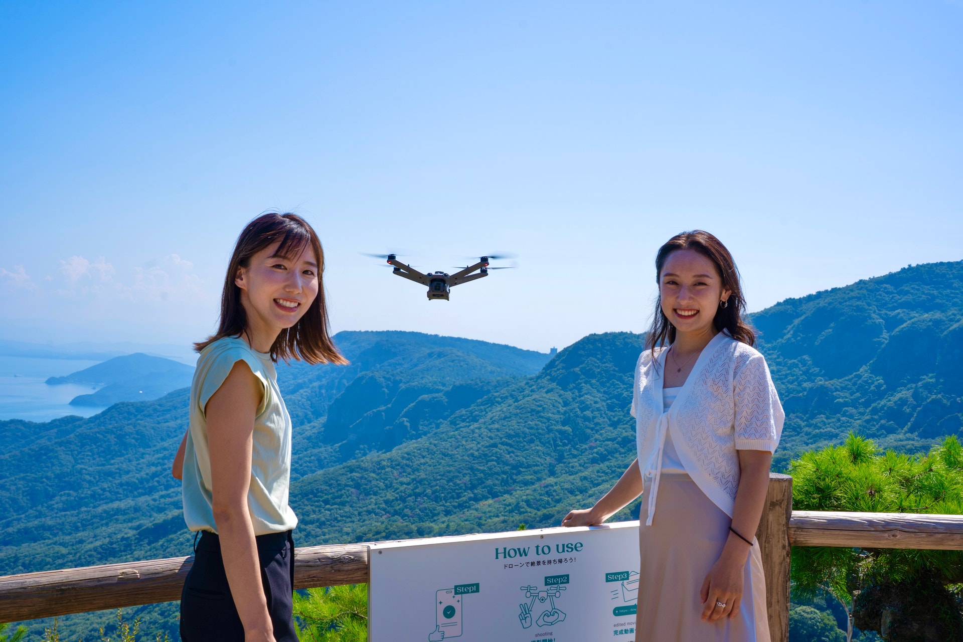 近くのステーションからドローンが自動で飛び立ち、約2分間の空撮が始まります。