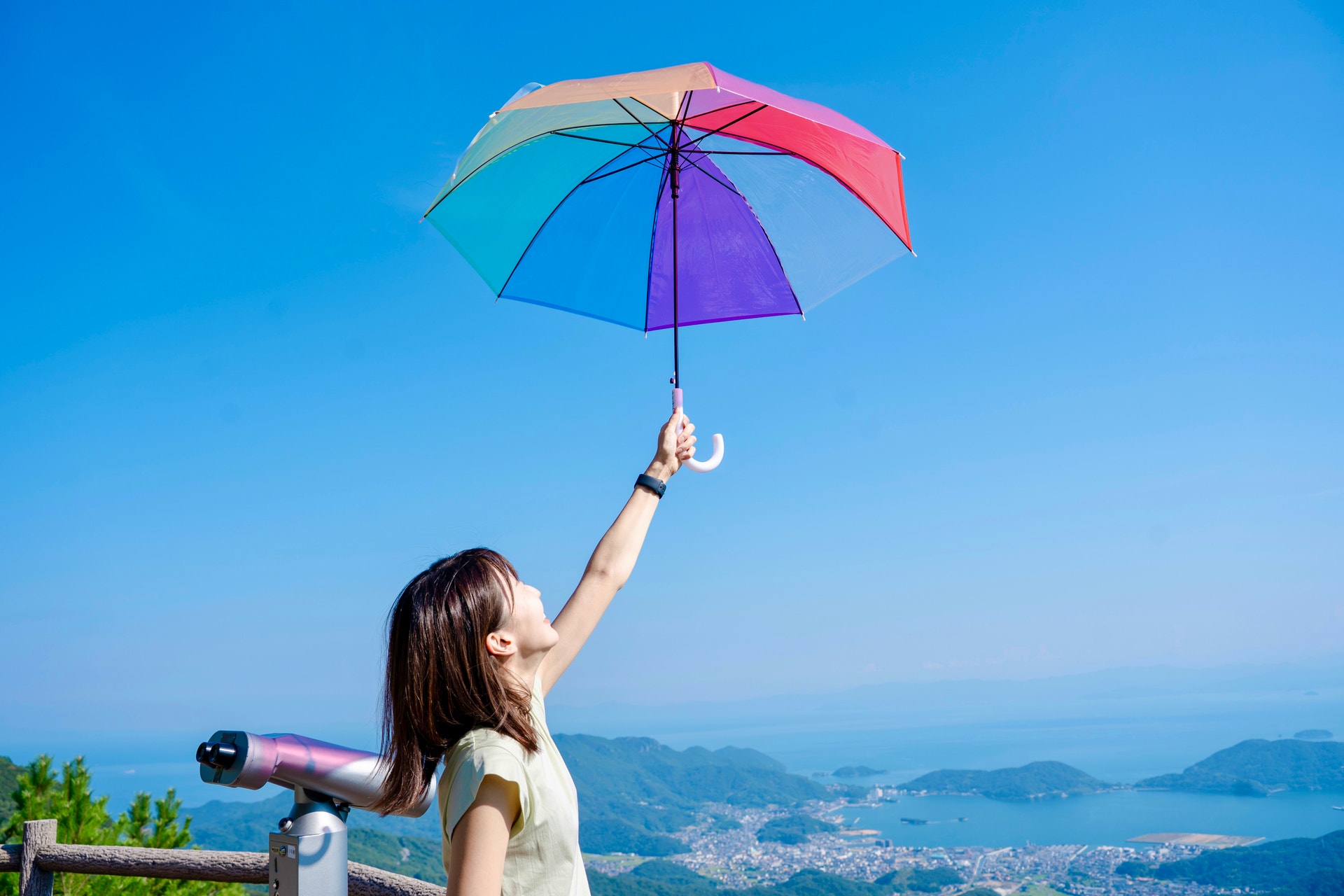 山頂駅舎では「なないろアンブレラ」もレンタルができ、カラフルな傘をさして歩けば、曇り空でも気分は晴れやかになります。