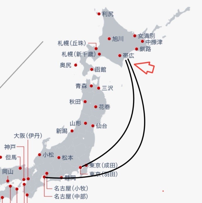 羽田空港から帯広空港まで飛行機で約1時間30分、中部国際空港から帯広空港(季節運航便2025年8月1日から31日)までは約1時間50分の距離。帯広空港から中札内村までは車で15分と好アクセス!