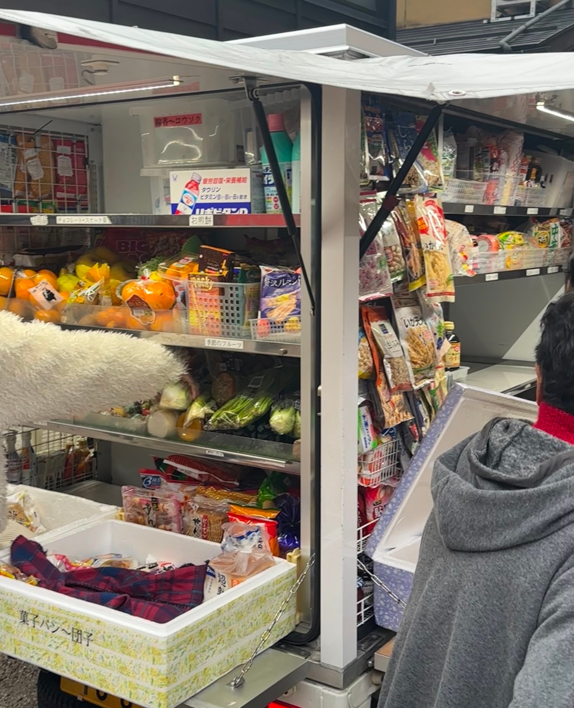 また、移動式スーパーにも出会いました。この地域では、周囲にスーパーマーケットやコンビニが少ないため、非常に貴重な存在です。肉や魚、惣菜から調味料まで幅広く取り揃えており、その場で暮らす人々の生活を支えているのがよく分かります。その便利さに、「こんなスーパーが自宅にも来てくれたらいいのに」と思わずにはいられませんでした。