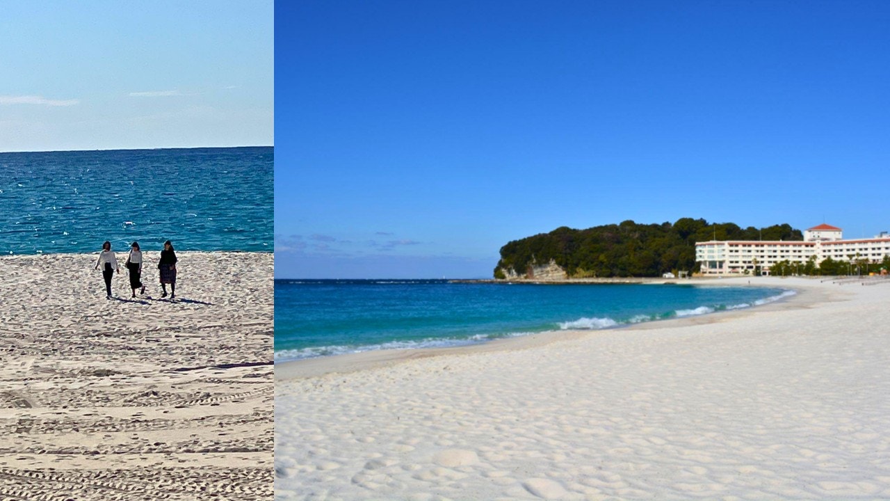お腹を満たした後は、真っ白な砂浜とエメラルドグリーンの海が美しい「白良浜」へ。