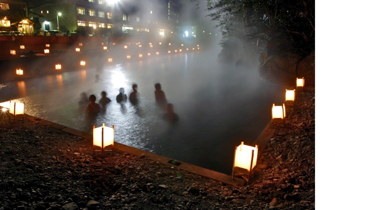 冬の風物詩でもある「仙人風呂」は、 12月〜2月まで川の一部をせき止めた巨大な露天風呂が登場します。
