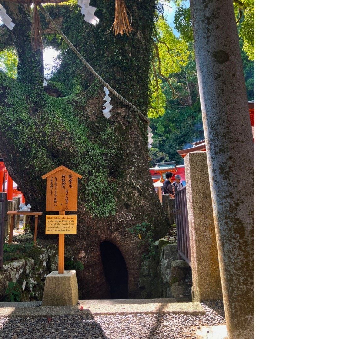 熊野那智大社の境内には、驚くほど大きな御神木(大楠)がそびえ立っています。